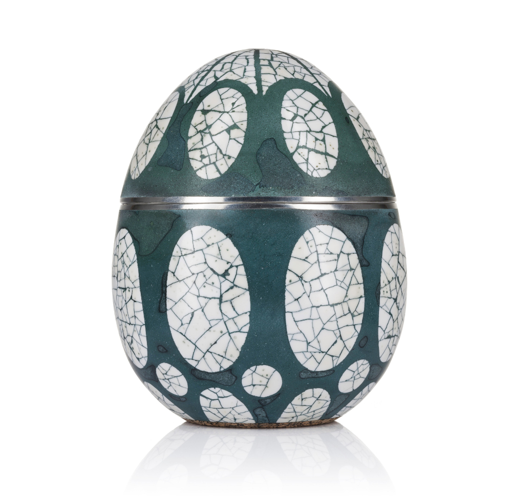 Two gifts in one. Our luxurious scented candles are housed in Fabergé-inspired trinket boxes. They’re both enduring and collectable and a place to keep little treasures once the candle has burned through. Each egg-shaped ceramic container is glazed on the inside and meticulously decorated with ostrich eggshell on the exterior, with trims in pewter.